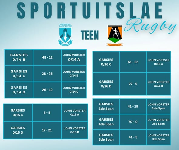 Ons spog graag met die volgende sportuitslae van die afgelope wedstryde.